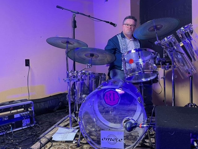 Nate is well known to have what has been described as an “encyclopedic knowledge” of drums and percussion. He has partnered playing acrylic drums and octobans from custom drum builder RL Drums and has an eclectic selection of cymbals and gongs from Omete cymbals and gongs. He also plays a variety of other instruments like electric and keyboard percussion (especially vintage vibes) and even plays solo music on chapman stick...